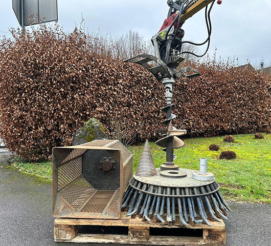 Unser Multigreifer von Blacksplitter ist ein Multitalent der sich mit seinen vielen Anbauteilen in allen möglichen Lagen einsetzen lässt. Er besitzt einen Kegelspalter, einen Erdbohrer, eine Wurzelfräse, einen Siebkorb sowie eine Wildkrautfräse.